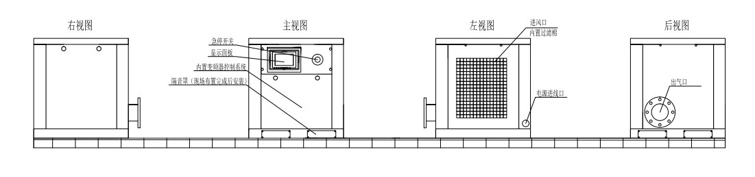 整機體積小,安裝方便,優化了轉子動力學結構,噪音和震動得到極大抑制,機器運行時噪聲等級<80dB(A)。高效、寧靜、環保,安裝靈活而簡便。
